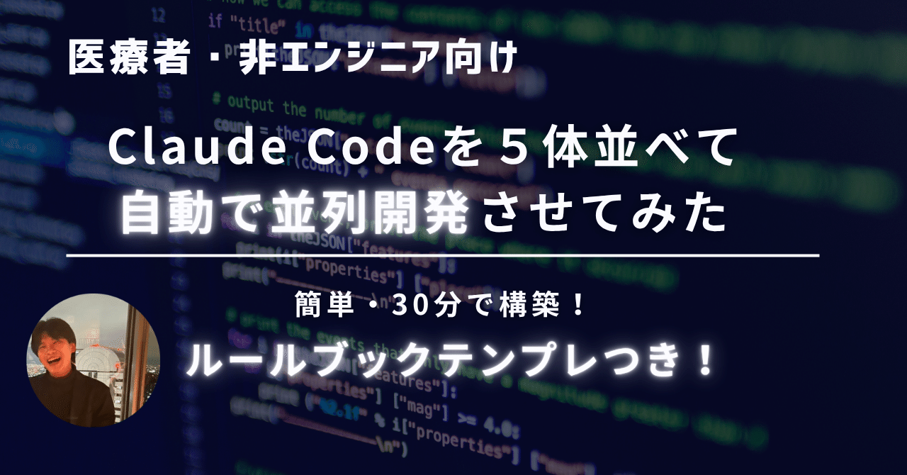 [医療者向け]30分構築!Claude Codeを5体並べて自動で並列開発!人間はそろそろ不要です|吉川 響(よしかわ ひびき) 医師×会社経営